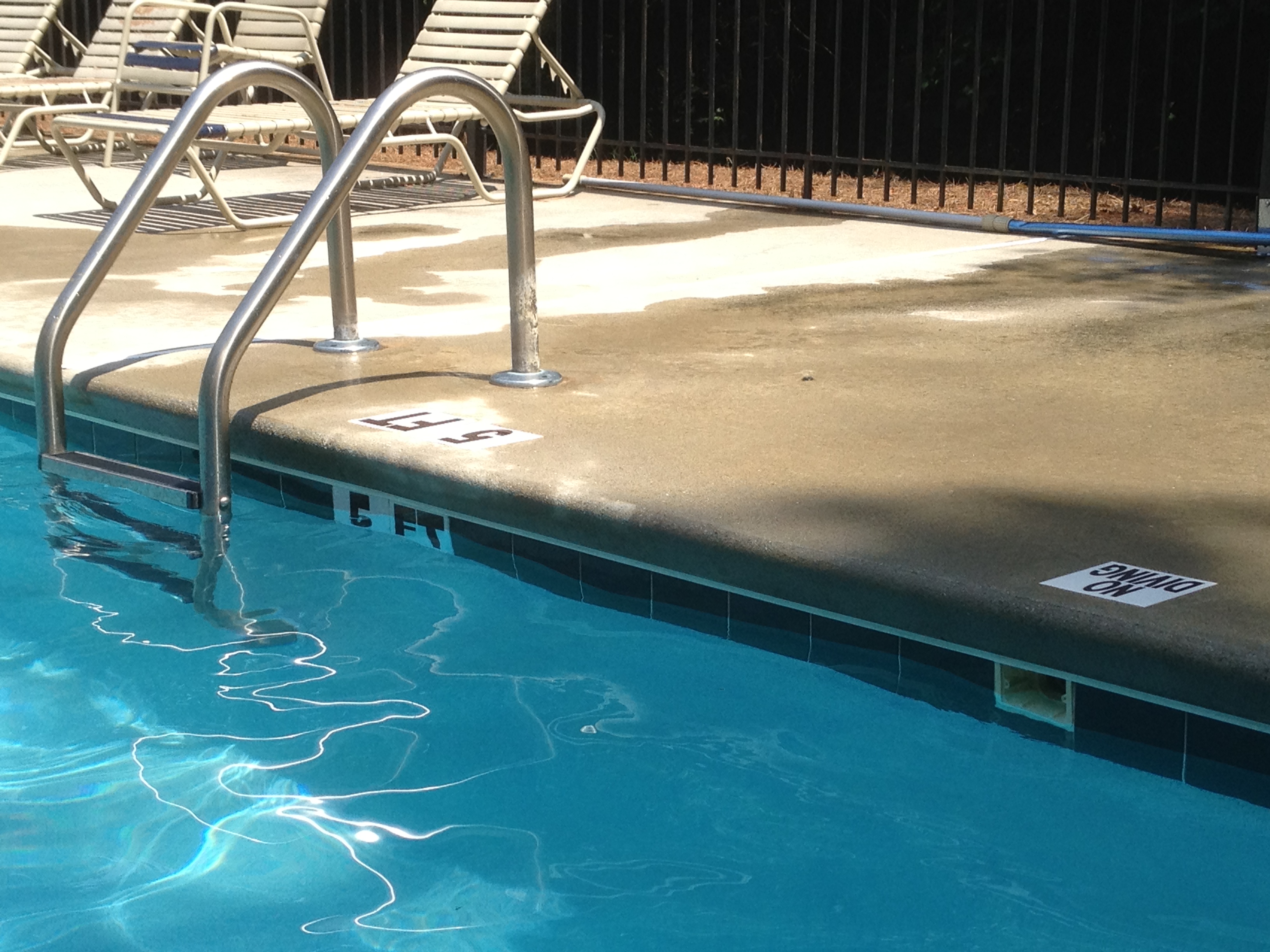 Just wanted everyone to know that the pool has a drain that keeps the water level stable. The drain is located near the ladder at the far end of the pool. If you are facing the ladder it is to the right. Last week I went down to the pool and someone had left the hose in the pool and the water running all night. This wastes water and money. Please be aware of the pool drain and do not attempt to fill the pool above the drain. The picture below shows the drain to the right of the ladder underneath the no diving sign. Thanks in advance for your help.